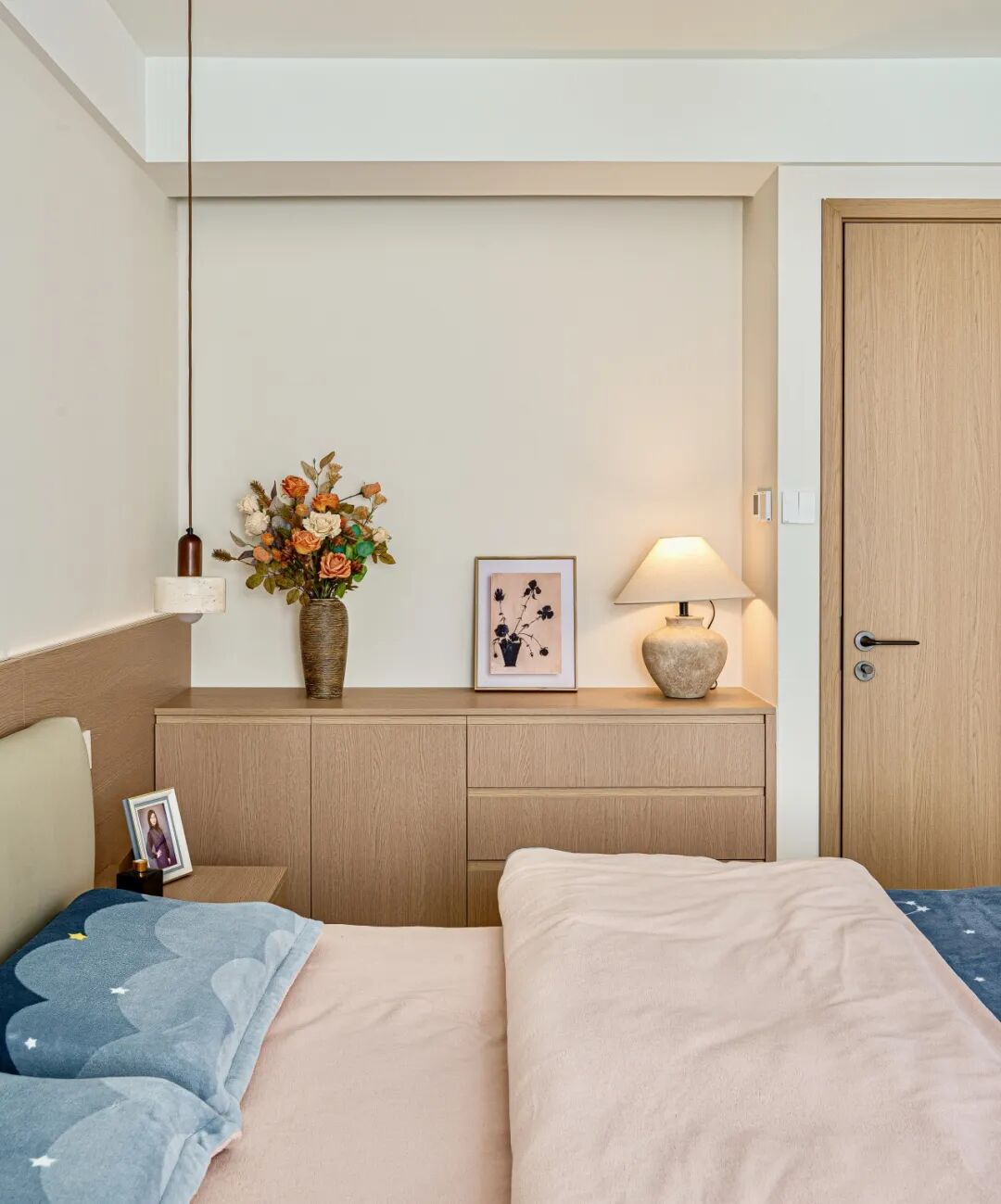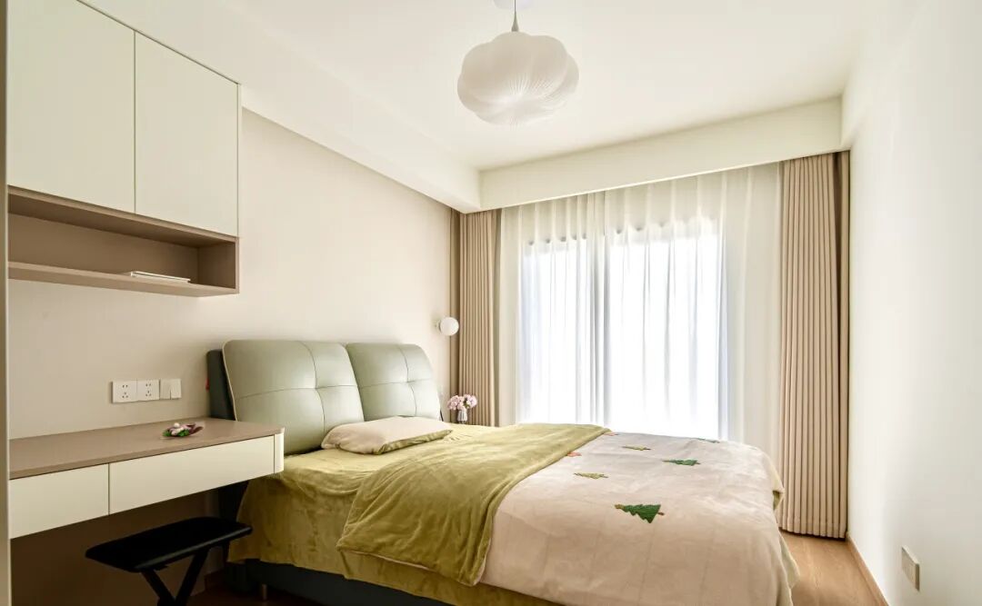 褪去公共区域的热闹,这里专属私人松弛时光。卧室空间延续温润原木美学,亲肤软装搭配定制柜体,采光通透、隔绝外界喧嚣,治愈所有疲惫。